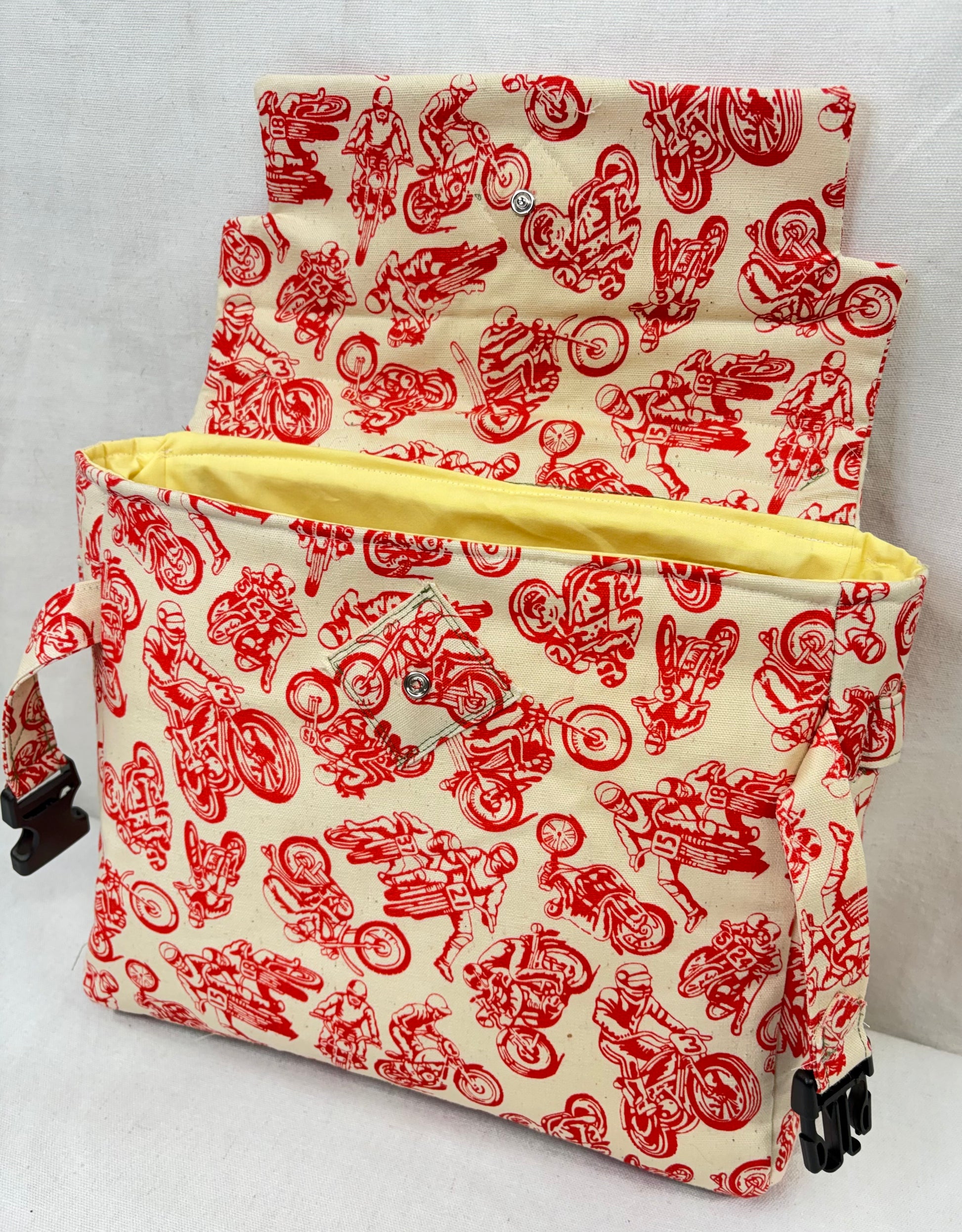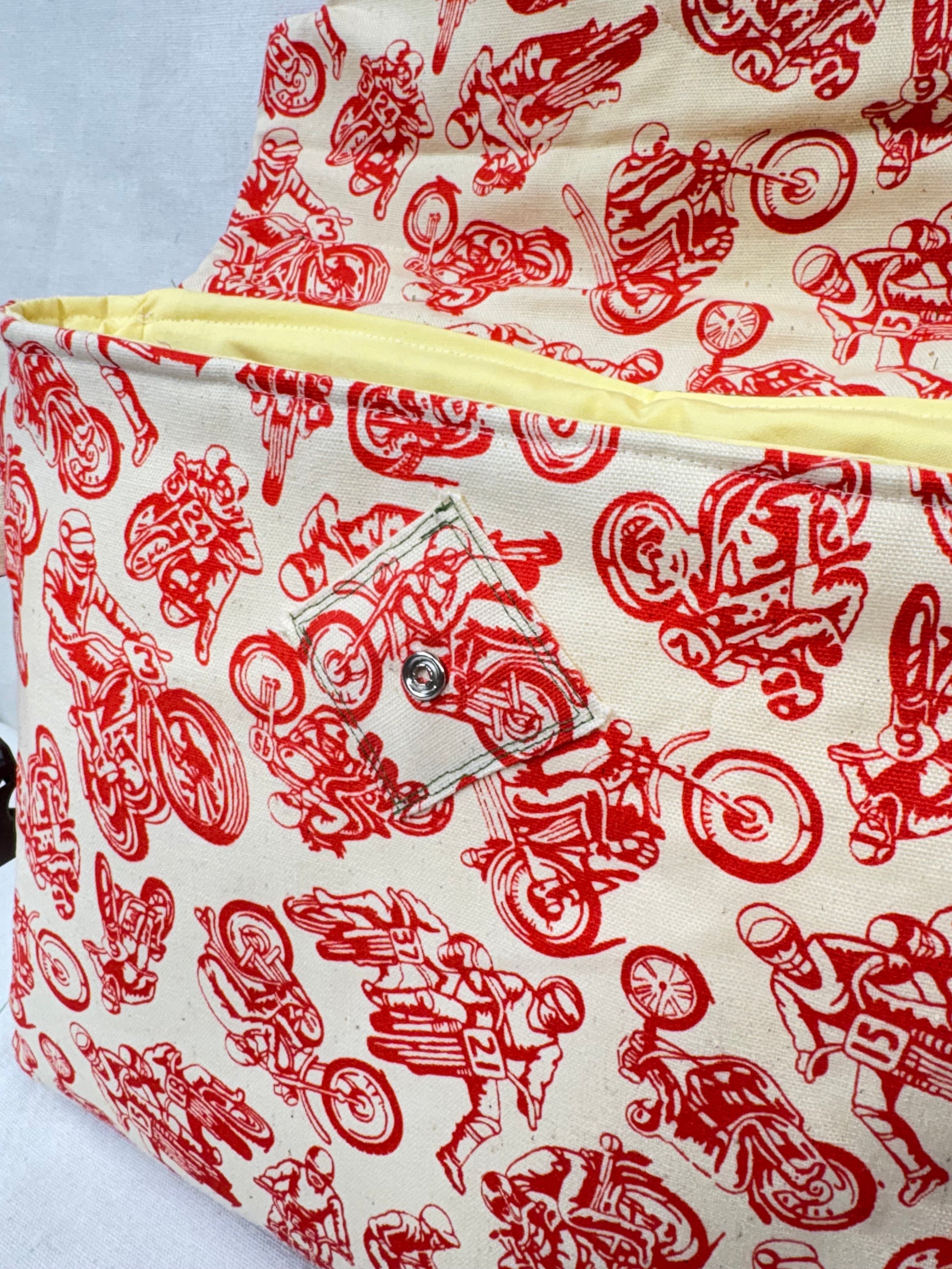 Vintage cafe racer fabric cut a sewn by No Silly Ideas.